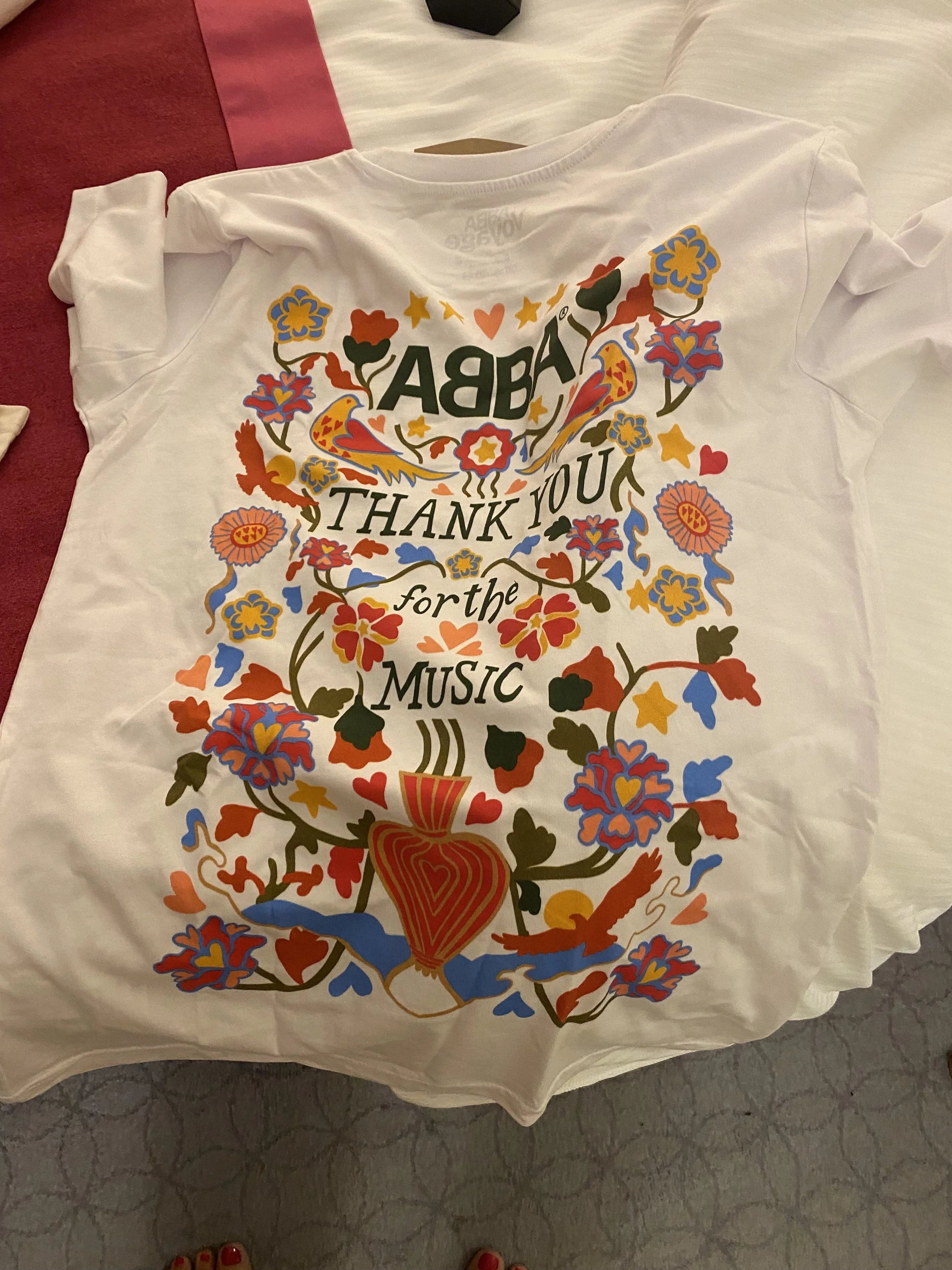 We arrived at the hotel late in the afternoon and rushed out to buy toothbrushes and toothpaste, makeup remover, deodorant and a basic moisturizer to spare me from Sahara syndrome. And then we rushed out again for a quick bite to eat with the groom’s lovely parents, before hopping on the Underground to go and see the fantastic ABBA Voyage concert (go and see if it you can!) where, in a moment of genius, I purchased an ABBA tee-shirt to wear in case I had to go panic shopping in Selfridges the following morning.